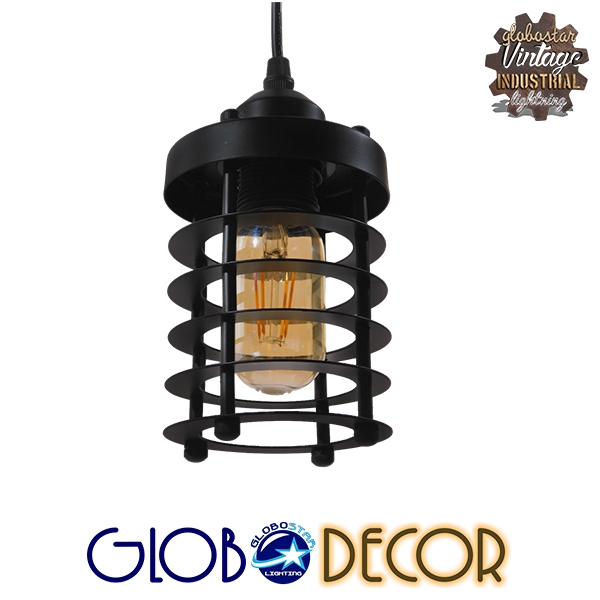 GloboStar® CAGE BLACK 01017 Vintage Industrial Κρεμαστό Φωτιστικό Οροφής Μονόφωτο Μαύρο Μεταλλικό Πλέγμα Φ15 x Y20cm