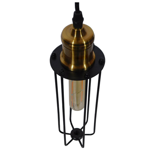 GloboStar® CANARIO 01107 Vintage Κρεμαστό Φωτιστικό Οροφής Μονόφωτο Μαύρο Μεταλλικό Πλέγμα Φ28 x Y47cm