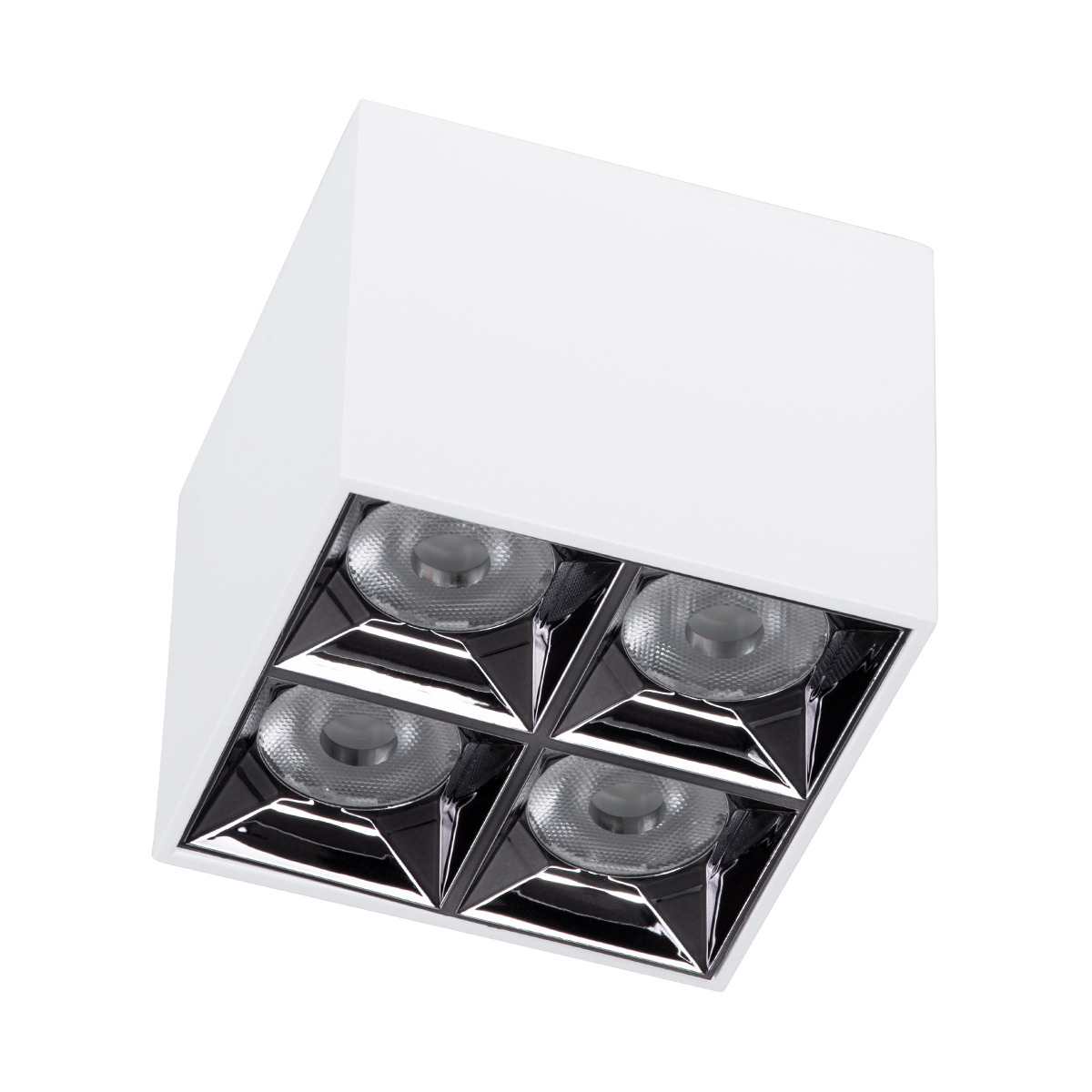 GloboStar® LUMINAR SUPERIOR 60338 Επιφανειακό LED Spot Downlight TrimLess 30W 4200lm 36° AC 220-240V IP20 Μ12 x Π12 x Υ6.6cm – Λευκό με Κάτοπτρο Χρωμίου – Φυσικό Λευκό 4500K – Bridgelux High Lumen Chip Gen2 – TÜV Certified Driver – 5 Years Warranty