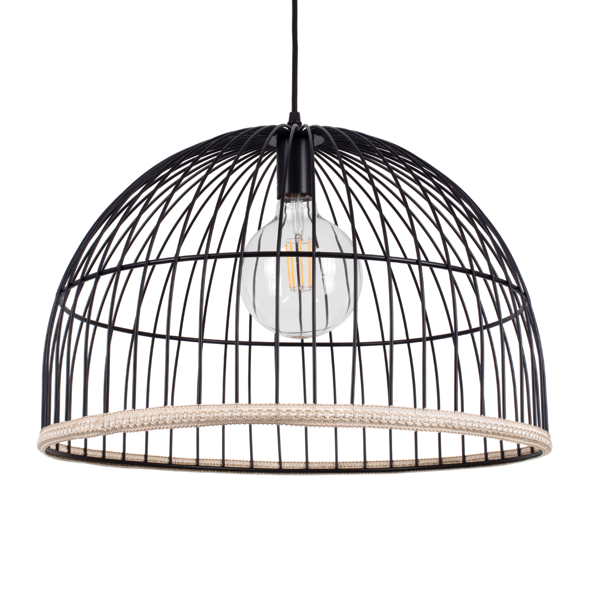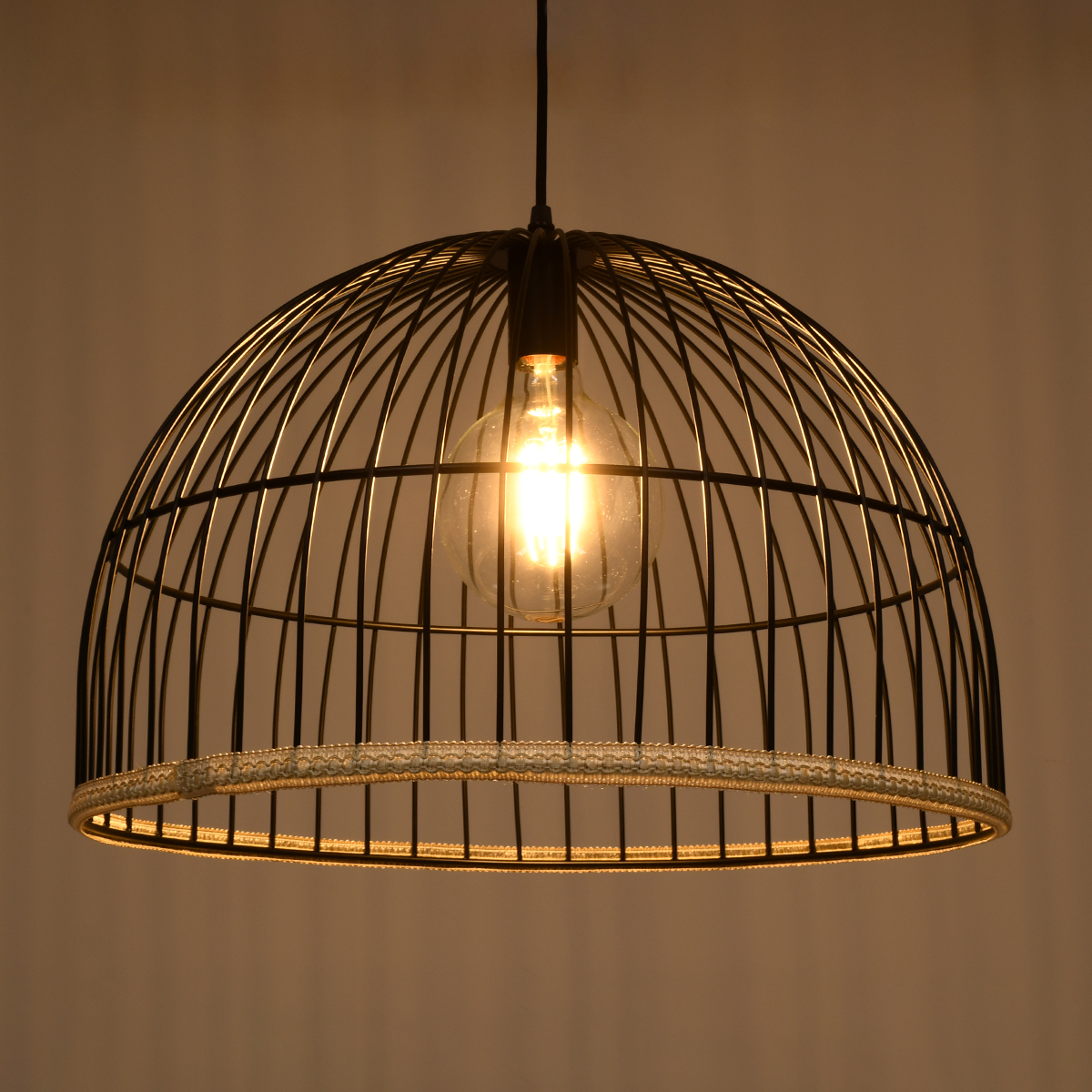 GloboStar® SOBRINO 01108 Vintage Κρεμαστό Φωτιστικό Οροφής Μονόφωτο Μαύρο Μεταλλικό Πλέγμα Φ46 x Y50cm