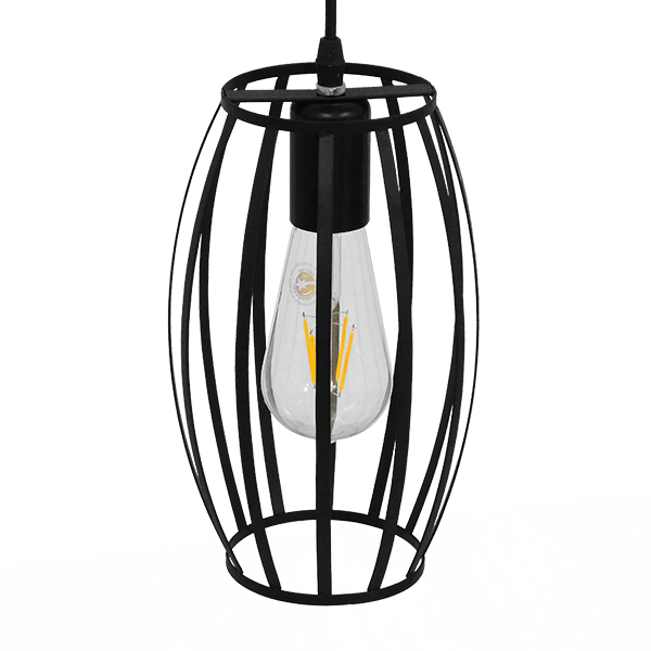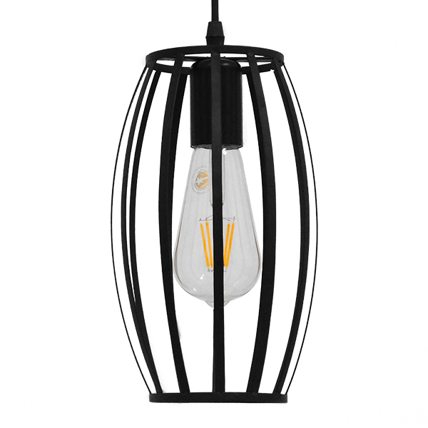 GloboStar® CAMBER 01016 Vintage Industrial Κρεμαστό Φωτιστικό Οροφής Μονόφωτο Μαύρο Μεταλλικό Πλέγμα Φ11 x Y25cm