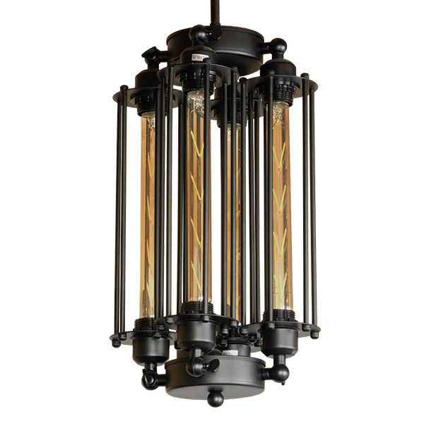 GloboStar® TUBING 01013 Vintage Industrial Κρεμαστό Φωτιστικό Οροφής Πολύφωτο Μαύρο Μεταλλικό Πλέγμα Φ27 x Y47cm